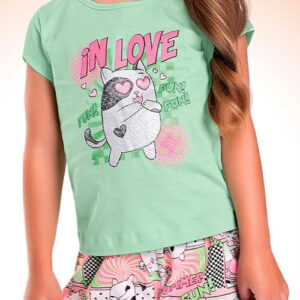 Conjunto blusa e short menina verde